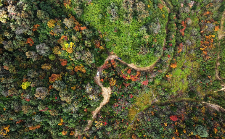 昆明:火紅楓葉勾勒詩意公園